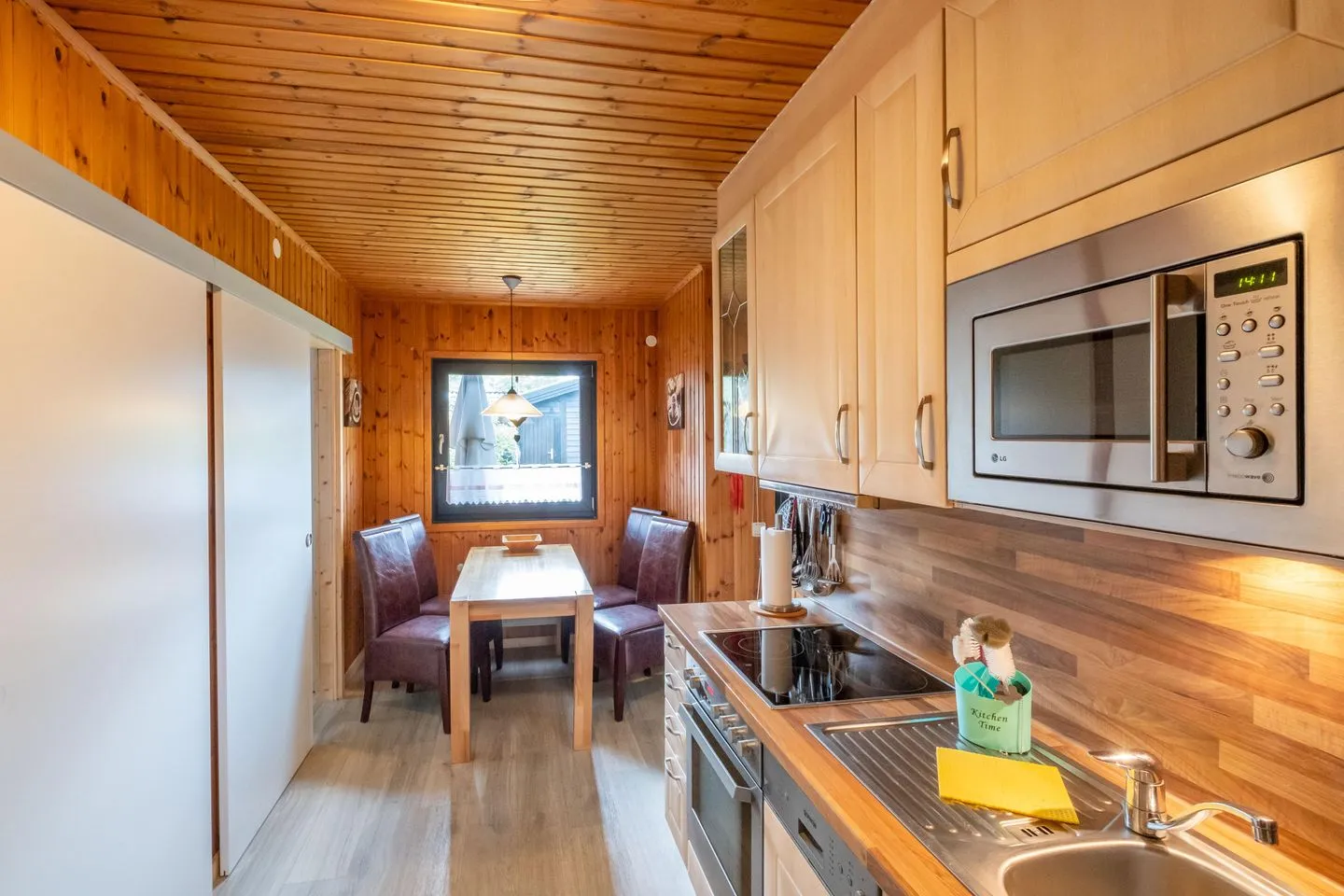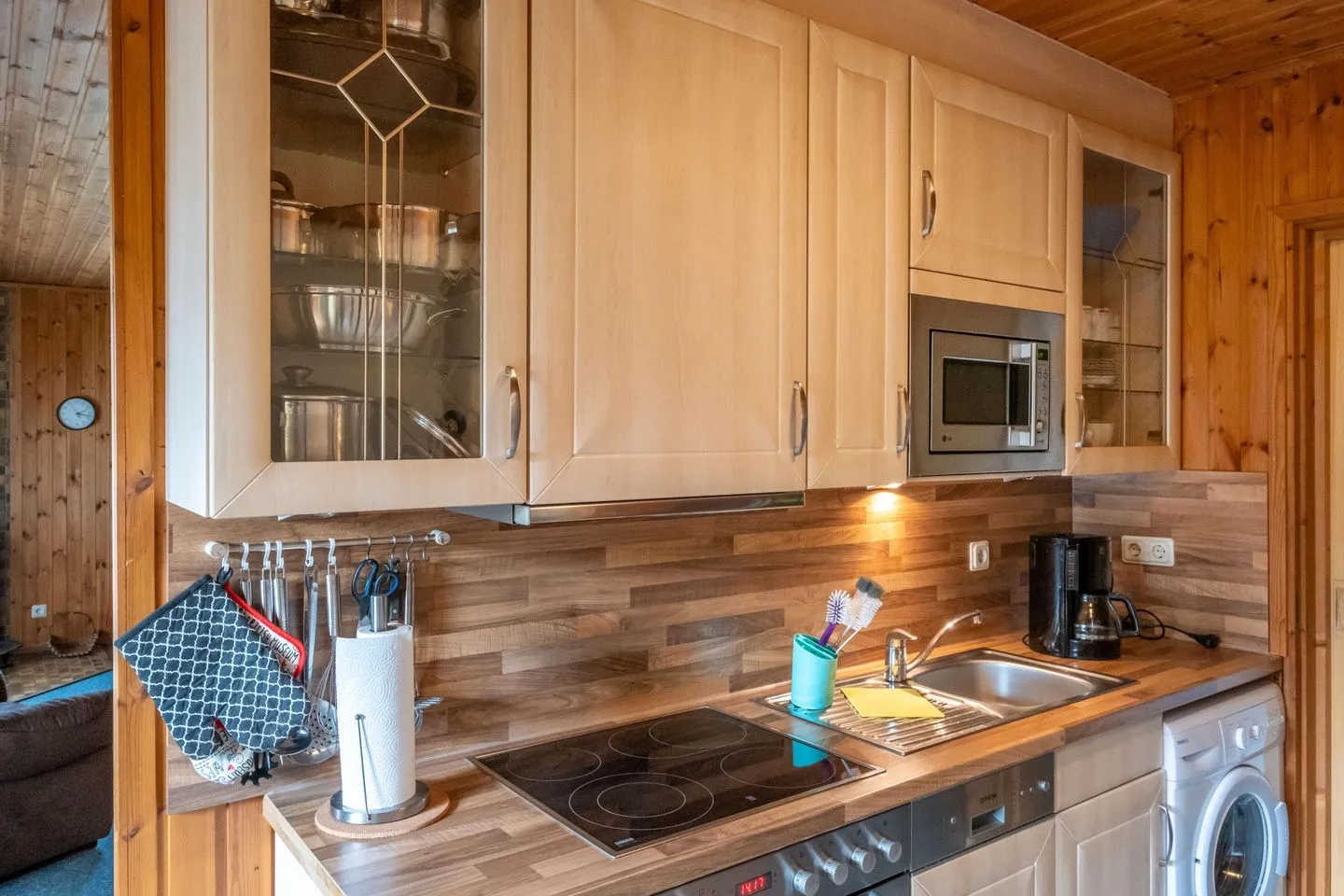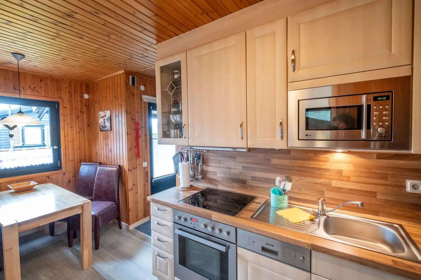 Das Ferienhaus besticht mit einer komfortablen Ausstattung: Zwei separate Schlafzimmer mit insgesamt vier Schlafmöglichkeiten stehen zur Verfügung, ergänzt durch ein großzügiges Wohnzimmer mit Sofaecke, Sessel und HiFi-Anlage. Die offene Küche ist bestens ausgestattet – unter anderem mit Spülmaschine, Ceranherd, Backofen, Kühlschrank mit Gefrierfach, Mikrowelle, Kaffeemaschine, Wasserkocher, Toaster sowie umfangreichem Geschirr und Besteck. Praktische Küchenutensilien und ein Esstisch machen gemeinsame Mahlzeiten zum Vergnügen. Das Badezimmer verfügt über Dusche, WC, Waschbecken, Spiegel und Haartrockner, zudem sorgt eine Waschmaschine zur Eigennutzung für zusätzlichen Komfort. Im Wohnbereich befinden sich ein Kaminofen für gemütliche Abende sowie ein moderner TV mit internationalen Kanälen. WLAN steht Ihnen selbstverständlich zur Verfügung.