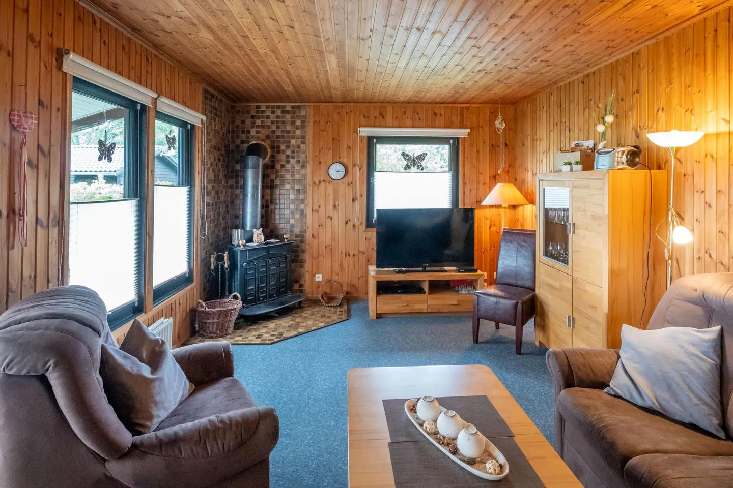 Dank umfassender Ausstattung wie Staubsauger, Wäschetrockner, Garderobe, Abfalleimer, Kommode, Sichtschutz an allen Fenstern, Ganzkörperspiegel und anderen praktischen Details ist das Kaminhaus 54 hervorragend auf die Bedürfnisse von Feriengästen vorbereitet.